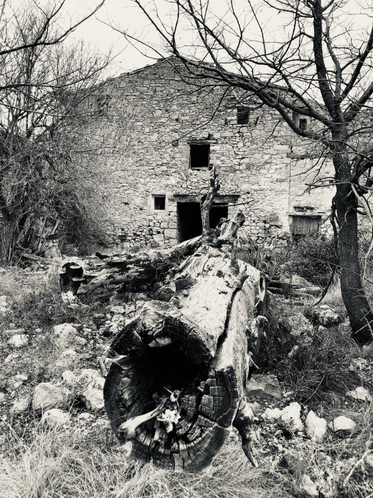 Explorar viejas ruinas rurales, caminar por viejos senderos